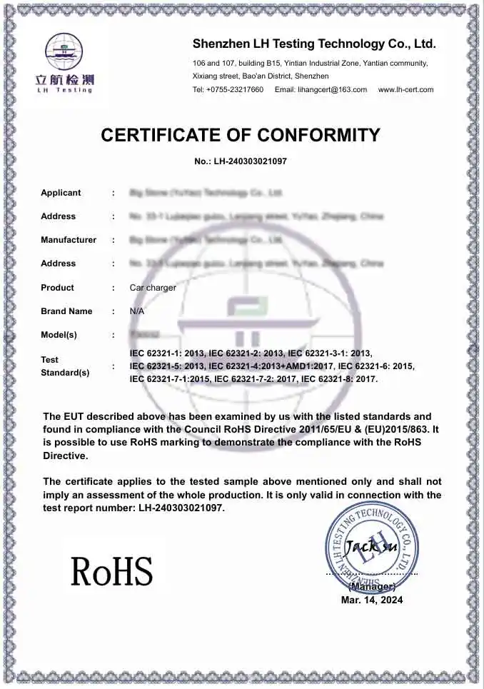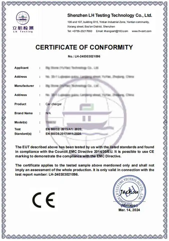A: Peşəkar fabrik olaraq məhsullarımız beynəlxalq təhlükəsizlik və ətraf mühit standartlarına tam uyğundur. Biz CE və RoHS sertifikatlı məhsullar təqdim edirik. Bundan əlavə, istehsal müəssisəmiz BSCI və ISO sertifikatına malikdir və bu, Avtomobil Şarj Cihazı Adapterlərimizin premium qlobal brendlərin tələb etdiyi ciddi texniki və etik standartlara cavab verməsini təmin edir.